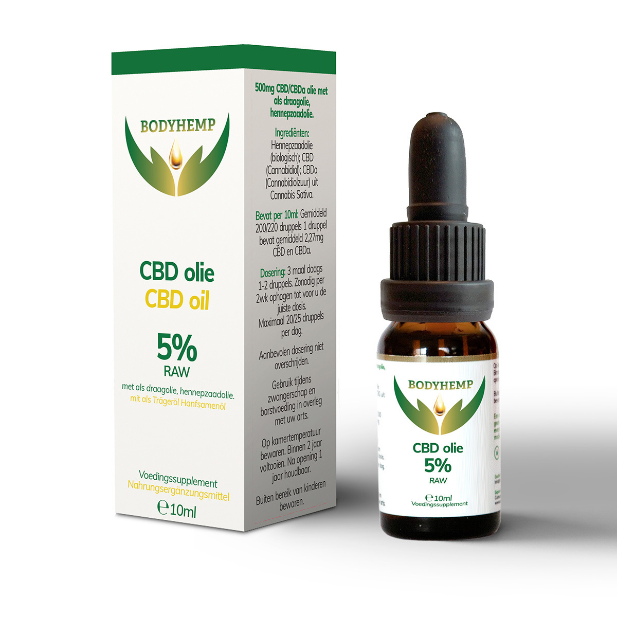 BODYHEMP CBD-olie RAW 5% een 100% natuurlijke olie 10 ml pipetflesje