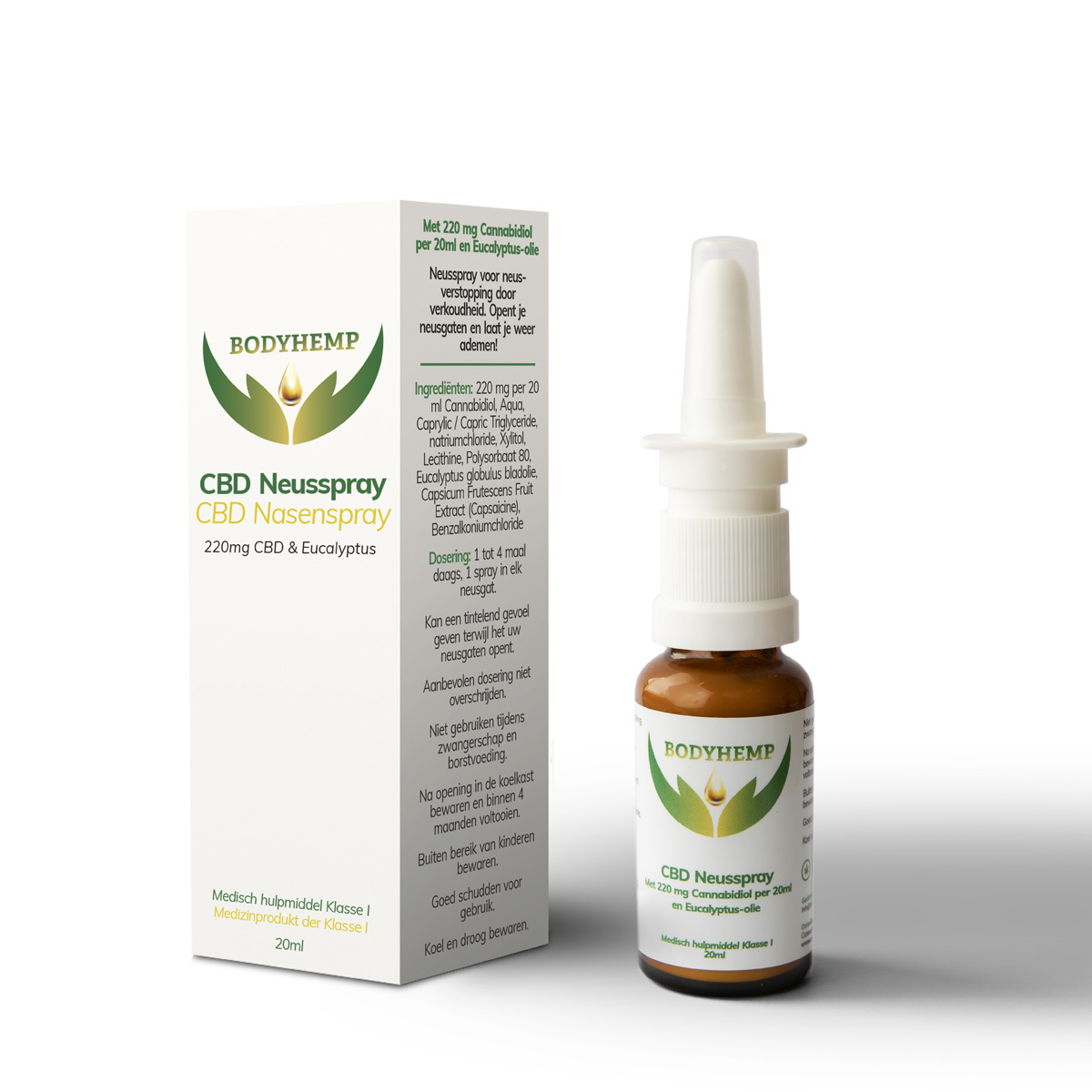 CBD-Neusspray 220mg Cannabidiol met Eucalyptusolie en Capsaïcine.